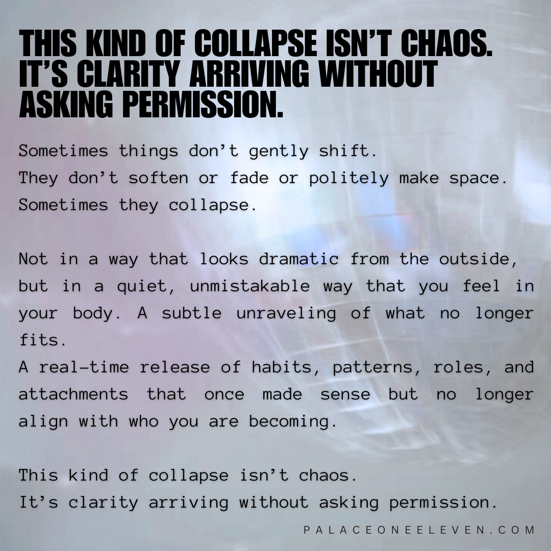 Within that collapse lives the quiet gift of perspective. The chance to see yourself honestly. To witness what you have been carrying. To recognize what has been asking to be released long before it finally fell away.